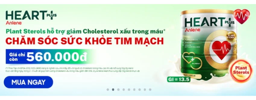 Sữa Anlene Heart Plus chứa hệ dưỡng chất dành cho người quan tâm đến sức khỏe tim mạch với các thành phần Sữa bột từ sữa bò, Inulin, Collagen, DHA, Vitamin sẽ giúp bạn hỗ trợ giảm Cholesterol xấu trong máu giá chỉ còn 560k/hộp.