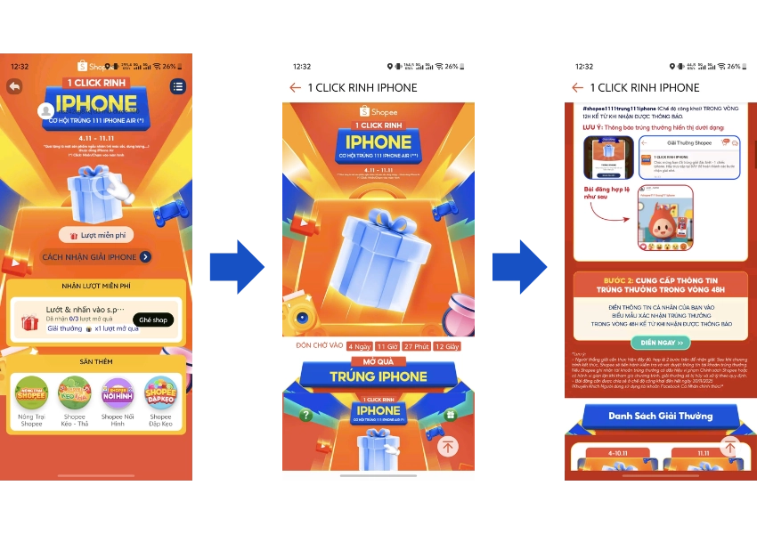 Mỗi ngày từ ngày 4/11 đến ngày 10/11 sẽ có 1 người may mắn mở được iPhone Air. Riêng ngày 11.11 sẽ có 104 suất may mắn vì vậy bạn đừng bỏ lỡ cơ hội để sở hữu chiếc iPhone miễn phí này nhé.