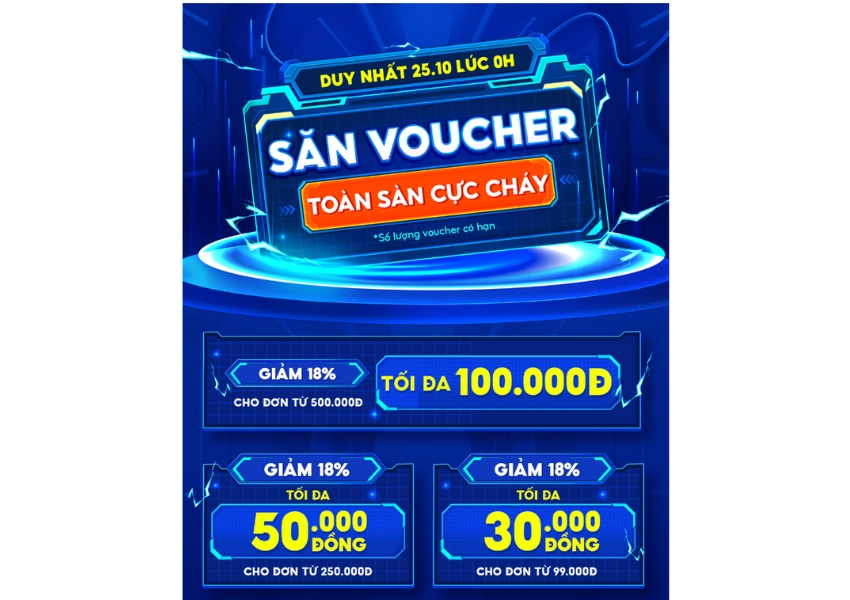 Duy nhất ngày 25.10 các bạn nhớ đặt lịch Săn Voucher toàn sàn cực hấp dẫn dưới đây. Các Voucher này sẽ mở để lưu và sử dụng vào 0h ngày 25.10 nhé.
