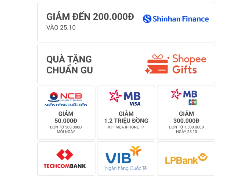 - Thanh toán qua Shinhan Finance giảm đến 200k vào duy nhất 25.10